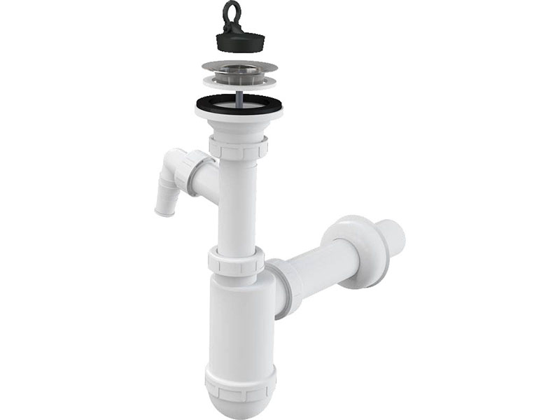- Сифон А41P для умывальника Ø40 с нержавеющей решеткой Ø63 и со штуцером: